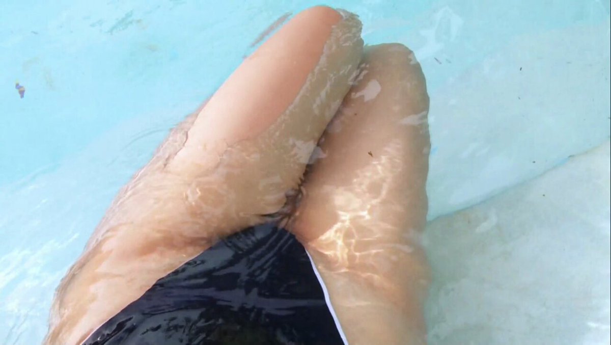 スクール水着 競泳水着 プール 薄地 ローアングル 透け 紺色 巨乳 ハイレグ ヴァネッサ・パン