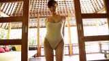 スクール水着 競泳水着 シャワー 薄地 尻フェチ ローアングル 青色 ハイレグ 我妻ゆりか